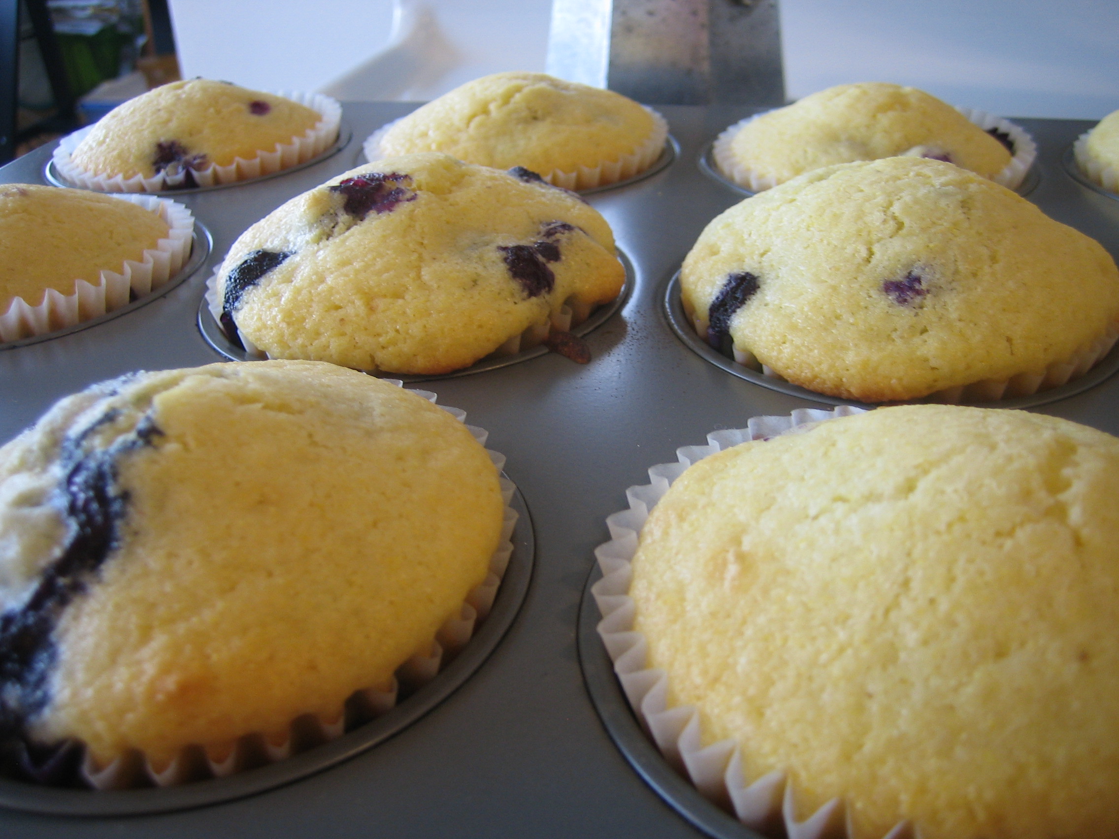 Lemon Blueberry Cornmeal Muffins, recipe taken from the 2012 Milk Calendar.