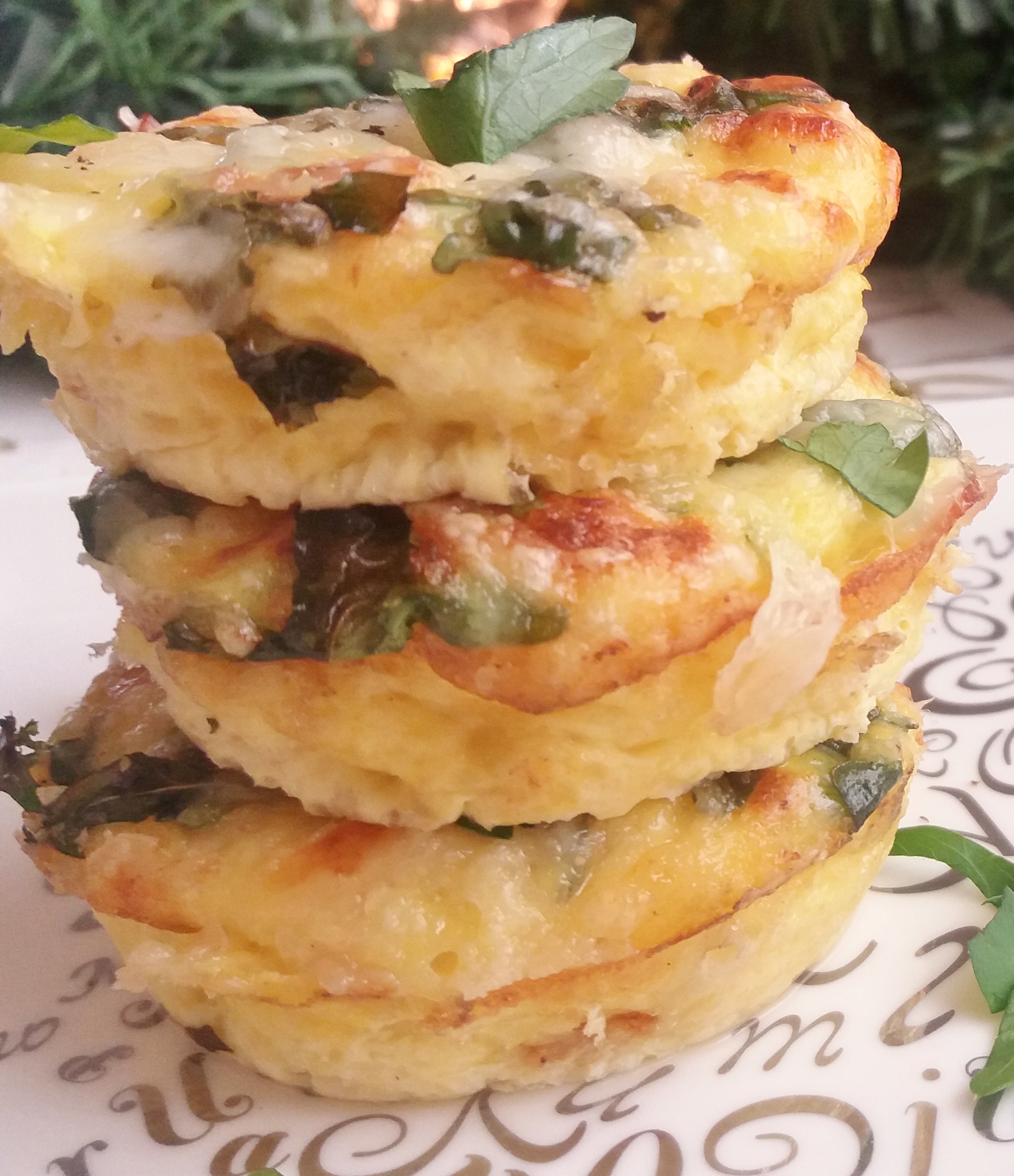 Use whatever you have left over in the fridge (cooked potatoes, tomato, spinach, onions, fresh herbs, prosciutto, maybe?), drop it into greased muffin tins and pour the eggy mixture over top and pop in the oven. In minutes you have a delicious, satisfying breakfast.